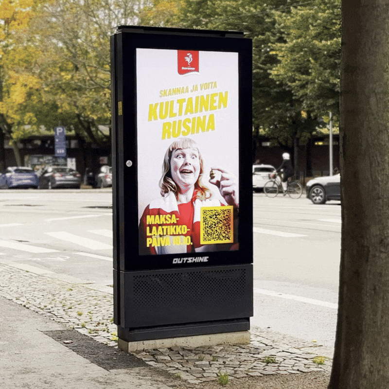 Yksi rusina oli kätketty yhteen alati paikkaa vaihtavaan digitaaliseen ulkomainokseen. Piti vain skannata QR-koodi ja tarkistaa, kävikö tuuri.